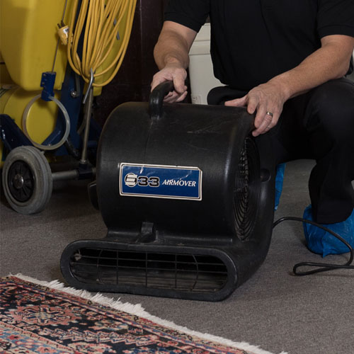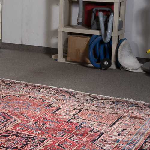 Now, your rug is inspected and hung up. Powerful air movers are used to speed the drying process. This prevents damage and “browning.”